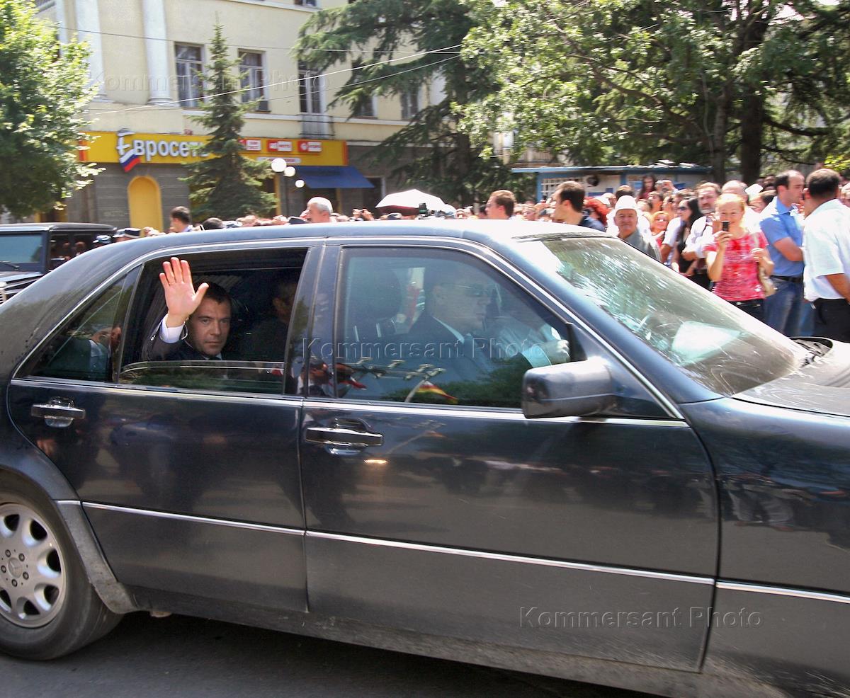 Президент России Дмитрий Медведев во время рабочей поездки в Южную Осетию. Торжественная церемония встречи президента России.