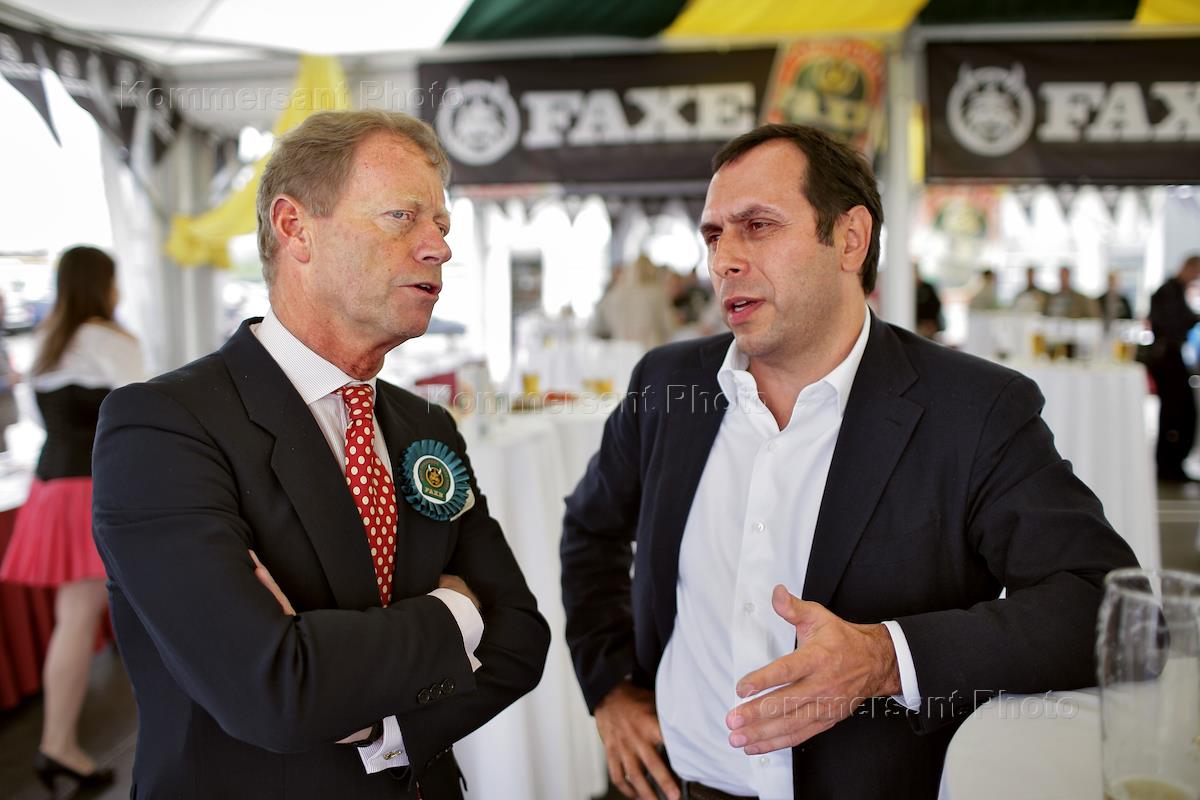 Исполнительный директор компании Royal Unibrew Ханс Савиньи (слева) и совладелец компании "МПК" (Московская пивоваренная компания) Александр Лифшиц (справа) во время праздничного мероприятия, приуроченного к запуску лицензионного производства пива FAXE на заводе "Московской пивоваренной компании".