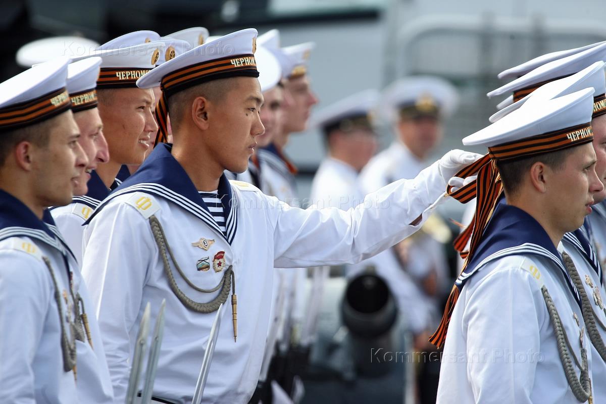 Commander in Chief of the Russian Navy Vladimir Vysotsky visits guided missile cruiser Moskva in Novorossiysk Bay.