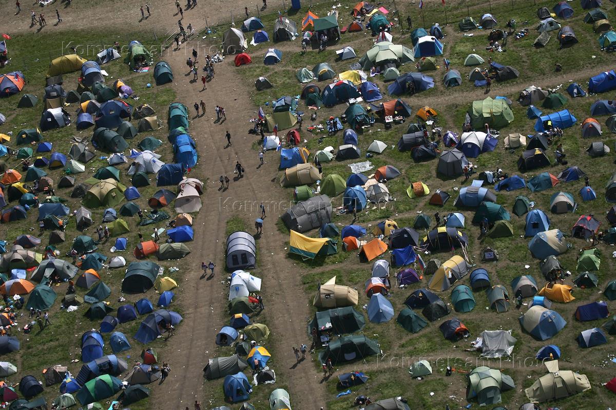 "Nashestvie 2009" rock festival took place in Bolshoe Zavidovo village in Tver region. Visitors' tent city.