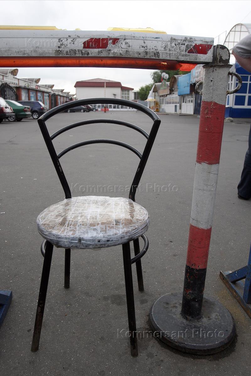 Жанровая фотография. Территория закрытого Черкизовского рынка. Шлагбаум на въезде.