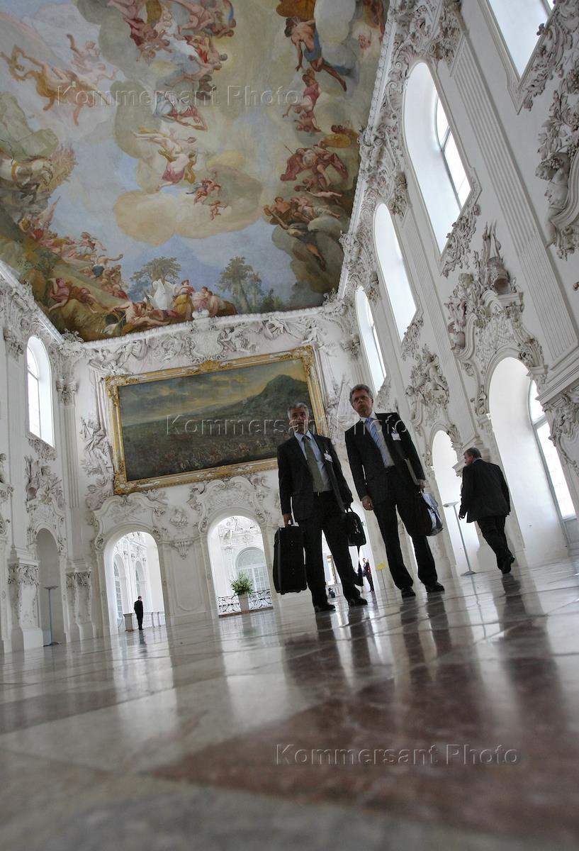 Церемония подписания соглашения по результатам российско-германских межгосударственных консультаций прошла в замке Шляйсхайм (Schleissheim).