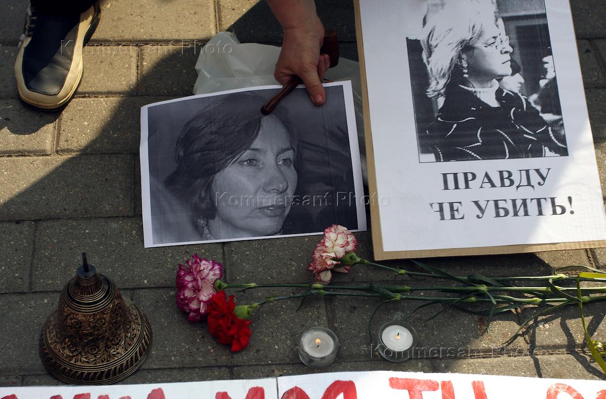 Пикет памяти правозащитницы Натальи Эстемировой, организованный активистами российских правозащитных организаций, прошел в Новопушкинском сквере.