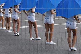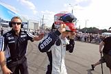 Японский гонщик Казуки Накаджима (в центре) после автомобильного шоу Bavaria Moscow City Racing. Шоу прошло на Кремлевской набережной.