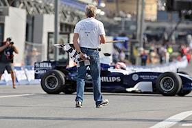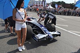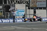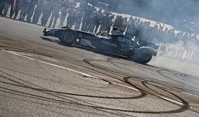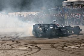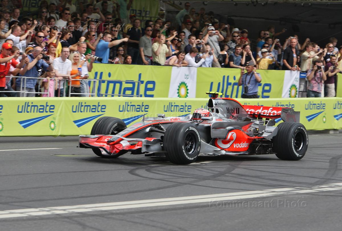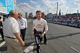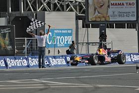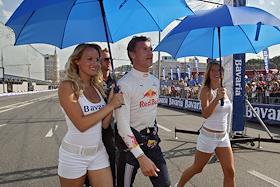 Финский гонщик Хейкки Ковалайнен на автомобильном шоу Bavaria Moscow City Racing. Шоу прошло на Кремлевской набережной.