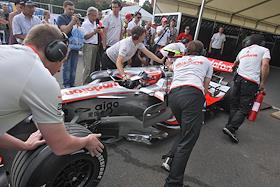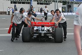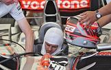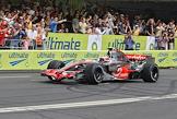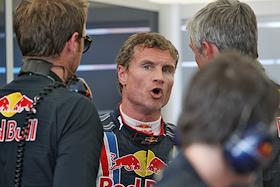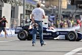 Гонщик "Формулы 1" Дэвид Кулхард (справа) после автомобильного шоу Bavaria Moscow City Racing. Шоу прошло на Кремлевской набережной.