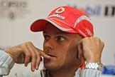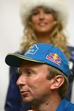 Финский гонщик Хейкки Ковалайнен на пресс-конференции перед стартом автомобильного шоу Bavaria Moscow City Racing. Шоу прошло на Кремлевской набережной.