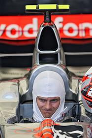 Гонщик "Формулы 1" Дэвид Кулхард после автомобильного шоу Bavaria Moscow City Racing. Шоу прошло на Кремлевской набережной.