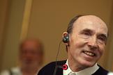 Владелец команды "Уильямс" ("Формула 1") Фрэнк Уильямс на пресс-конференции перед стартом автомобильного шоу Bavaria Moscow City Racing. Шоу прошло на Кремлевской набережной.