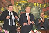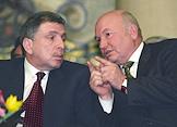 Заместитель председателя Правительства России по военно-промышленному комплексу Илья Клебанов (слева) и мэр Москвы Юрий Лужков (справа) на церемонии присуждения президенту Азербайджана Гейдару Алиеву звания почетного доктора Московского Государственного университета им.М.В.Ломоносова (МГУ). Награждение состоялось на торжественном собрании, посвященном 247-летию МГУ.