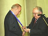 Мэр Москвы Юрий Лужков на церемонии присуждения президенту Азербайджана Гейдару Алиеву звания почетного доктора Московского Государственного университета им.М.В.Ломоносова (МГУ). Награждение состоялось на торжественном собрании, посвященном 247-летию МГУ.
