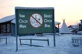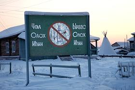Рекламный щит о запрете курения и распития спиртных напитков на въезде в село Оленёк Оленекского района.