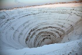 Жанровая фотография. Заснеженный карьер открытой добычи алмазов "Мир".