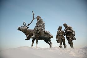 Скульптурная группа "Каюр и геологи" при въезде в город Мирный.