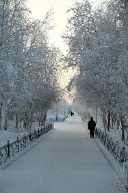 Виды Республики Саха (Якутия). Заснеженный лес.