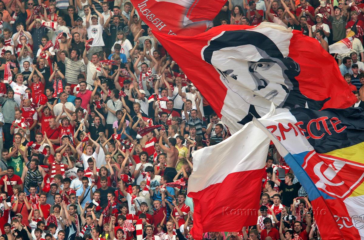 Росгосстрах - чемпионат России - 2009. 15 тур. Матч между командами ЦСКА (Москва)- "Спартак" (Москва) (1:2) прошел на Большой спортивной арене (БСА) "Лужники". Болельщики команды "Спартак" на трибуне во время матча.