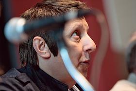 Режиссер Робер Лепаж, постановщик спектакля "Липсинк" в рамках Чеховского фестиваля, во время пресс-конференции в театре Петра Фоменко.