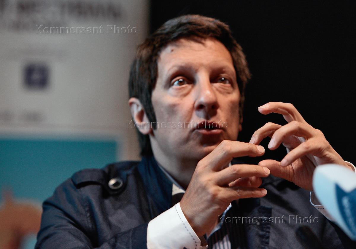 Режиссер Робер Лепаж во время пресс-конференции в театре "Мастерская Петра Фоменко".