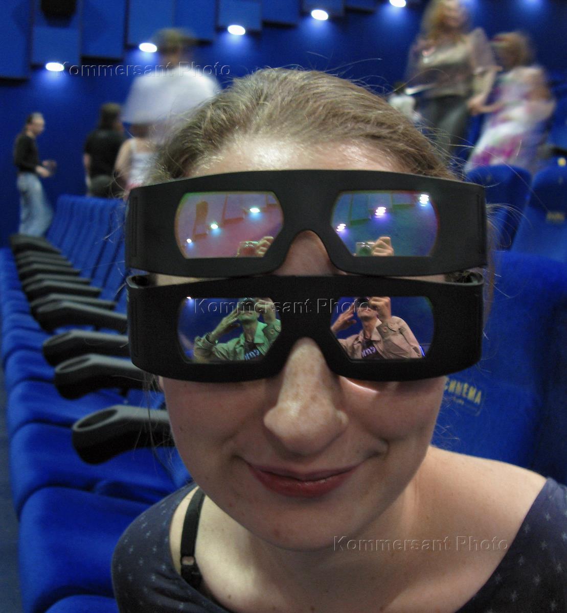 Жанровая фотография. Зрительница в стереоочках в зале кинотеатра.