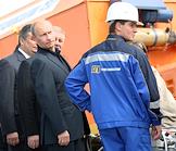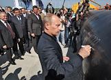 Слева направо: министр энергетики России Сергей Шматко, заместитель председателя правления ОАО "Газпром" Александр Ананенков и председатель правительства России Владимир Путин во время торжественной церемонии начала строительства магистрального газопровода "Сахалин - Хабаровск - Владивосток".