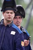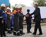 Рабочие во время торжественной церемонии начала строительства магистрального газопровода "Сахалин - Хабаровск - Владивосток".
