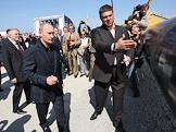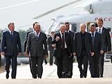 Слева направо на первом плане: губернатор Хабаровского края Вячеслав Шпорт, полномочный представитель президента России в Дальневосточном федеральном округе (ДФО) Виктор Ишаев, заместитель председателя правления ОАО "Газпром" Александр Ананенков и председатель правительства России Владимир Путин во время торжественной церемонии начала строительства магистрального газопровода "Сахалин - Хабаровск - Владивосток".