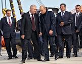 Председатель правительства России Владимир Путин (слева) во время торжественной церемонии начала строительства магистрального газопровода "Сахалин - Хабаровск - Владивосток".