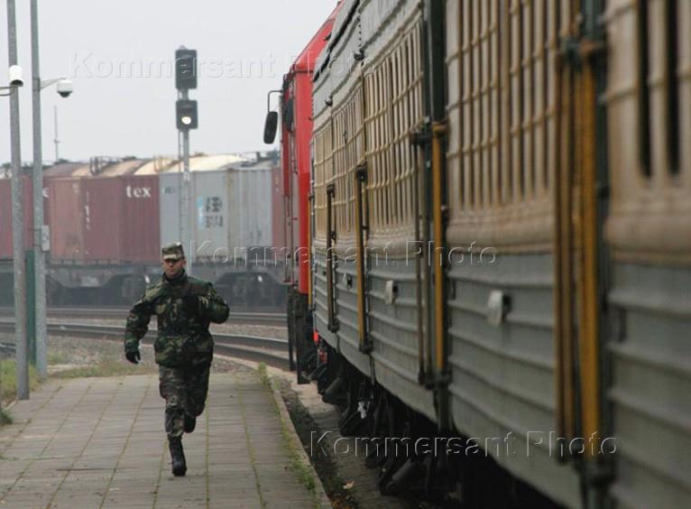 Жанровая фотография. Сотрудник пограничной службы Литвы на железнодорожной платформе.