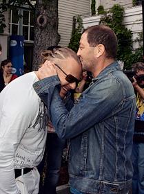 VIII Международный конкурс молодых исполнителей популярной музыки "Новая волна-2009". Певцы Владимир Пресняков (слева) и Григорий Лепс (справа) у концертного зала "Дзинтари".