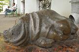 Памятник бегемотихе Тоне во дворе здания Филологического факультета Санкт-Петербургского Государственного Университета (СПбГУ). Автор скульптуры Владимир Петровичев. "По легенде девушка, которая мечтает найти жениха, должна подержаться за правое ухо бегемотихи, а молодой человек, если он хочет найти невесту - за левое".
