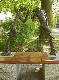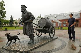Образцы городской скульптуры Санкт-Петербурга. Памятник питерскому водовозу на Шпалерной улице у водонапорной башни (по проекту скульптора Сергея Дмитриева и архитектора В. Васильева).