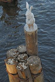 Образцы городской скульптуры Санкт-Петербурга. Памятник "Зайцу спасшемуся от наводнения" под Иоанновским мостом, который ведет на Заячий остров.