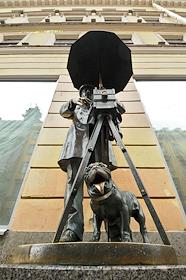 Образцы городской скульптуры Санкт-Петербурга. "Памятник Петербургскому фотографу" на Малой садовой улице.