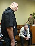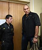 Боксер Николай Валуев (справа) перед началом заседания Калининского федерального суда. Николая Валуева обвиняется в причинении легкого вреда здоровью охранника СК "Спартак" Юрия Сергеева.