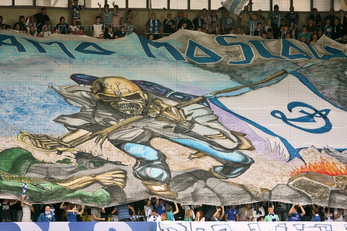 Лига Европы по футболу. 3-й квалификационный раунд. Матч между командами "Динамо" (Москва) -"Селтик" (Шотландия) прошел на стадионе "Арена Химки". Болельщики команды "Динамо" на трибуне.