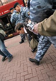 Сотрудники ОМОН во время задержания участников шествия, посвященного празднованию Дня Государственного флага России. Шествие, организованное оппозиционным движением "Солидарность" прошло от станции метро "Краснопресненская" до улицы Старый Арбат.