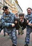 Сотрудники ОМОН во время задержания члена политсовета оппозиционного движения "Солидарность" Романа Доброхотова (в центре) на шествии, посвященном празднованию Дня Государственного флага России. Шествие, организованное оппозиционным движением "Солидарность" прошло от станции метро "Краснопресненская" до улицы Старый Арбат.