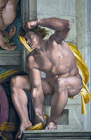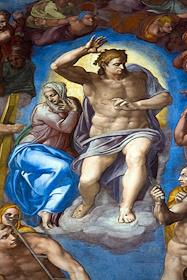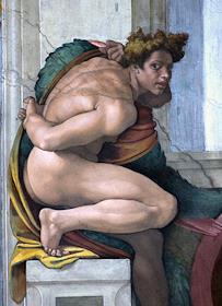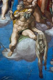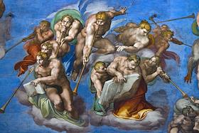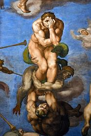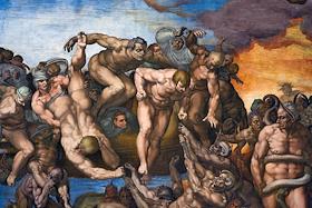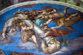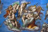Плафон (потолок) Сикстинской капеллы в Ватикане. Фрагмент фрески алтаря художника Микеланджело Буонарроти "Страшный Суд".