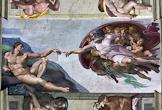 Плафон (потолок) Сикстинской капеллы в Ватикане. Фрагмент росписи художника Микеланджело Буонарроти "Сотворение Адама".