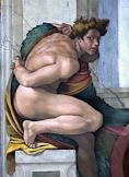 Плафон (потолок) Сикстинской капеллы в Ватикане. Фрагмент фрески росписи художника Микеланджело Буонарроти.