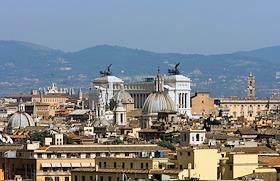 Виды Рима. Капитолийский холм. Статуи Диоскуров и здание мэрии Рима.