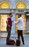 Жанровая фотография. Беседующие мужчины на одной из римских улиц.