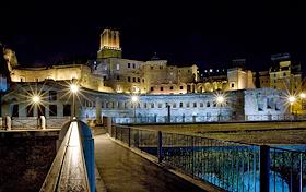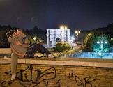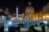 Виды ночного Рима. Купола церкви Святой Агнессы на площади Навона (на первом плане) и собора Святого Петра.