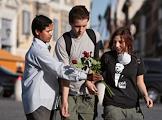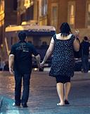 Жанровая фотография. Продавец цветов предлагает цветы молодой паре на площади Пьяцца дель Попполо.