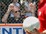 Зритель на финале ватиканского футбольного турнира "Кубок священников" (Clericus Cup) 2009 года. Турнир проводится среди команд католических семинарий и католических духовных институтов. Игра прошла на стадионе Св. Петра в Ватикане.