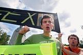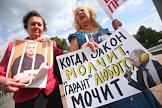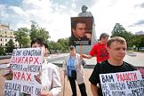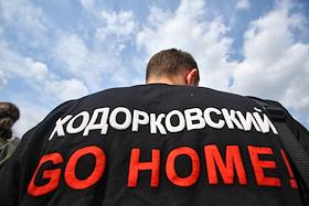 Акция в поддержку бывшего главы компании "ЮКОС" Михаила Ходорковского и бывшего главы МФО "Менатеп" Платона Лебедева прошла на площади Революции. Надпись на футболке "Ходорковский go home!".