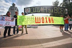 Акция с связи с окончанием чтения обвинения Михаилу Ходорковскому и Платону Лебедеву и с началом вызова в суд свидетелей, на Площади Революции.