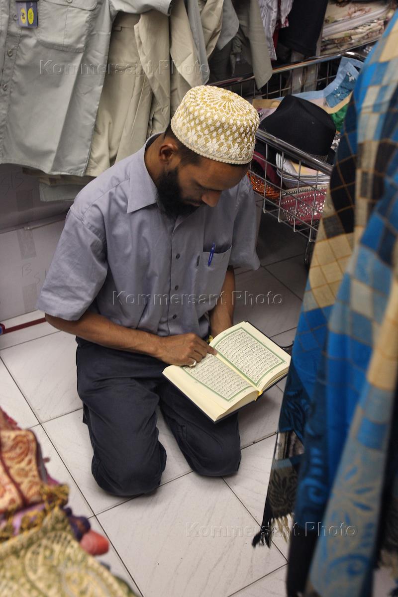 Жанровая фотография. Верующие молятся на улицах города Дубаи.