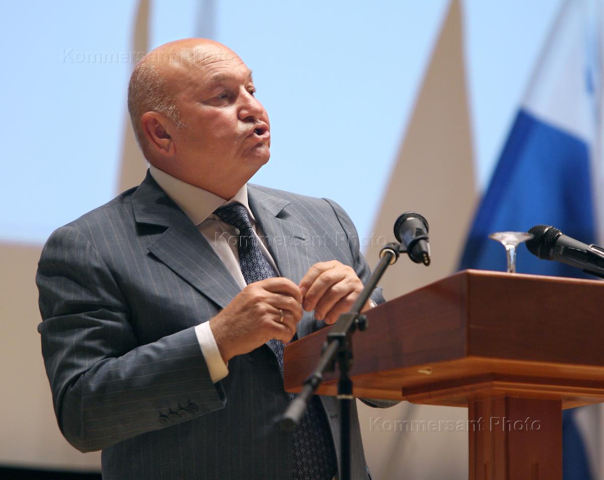 Мэр Москвы Юрий Лужков во время лекции "Кризис и экономические проблемы России", которую он прочел в Международном университете в Москве.