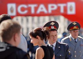 Празднование Дня города. Московские милиционеры провели спортивную эстафету по Садовому кольцу.